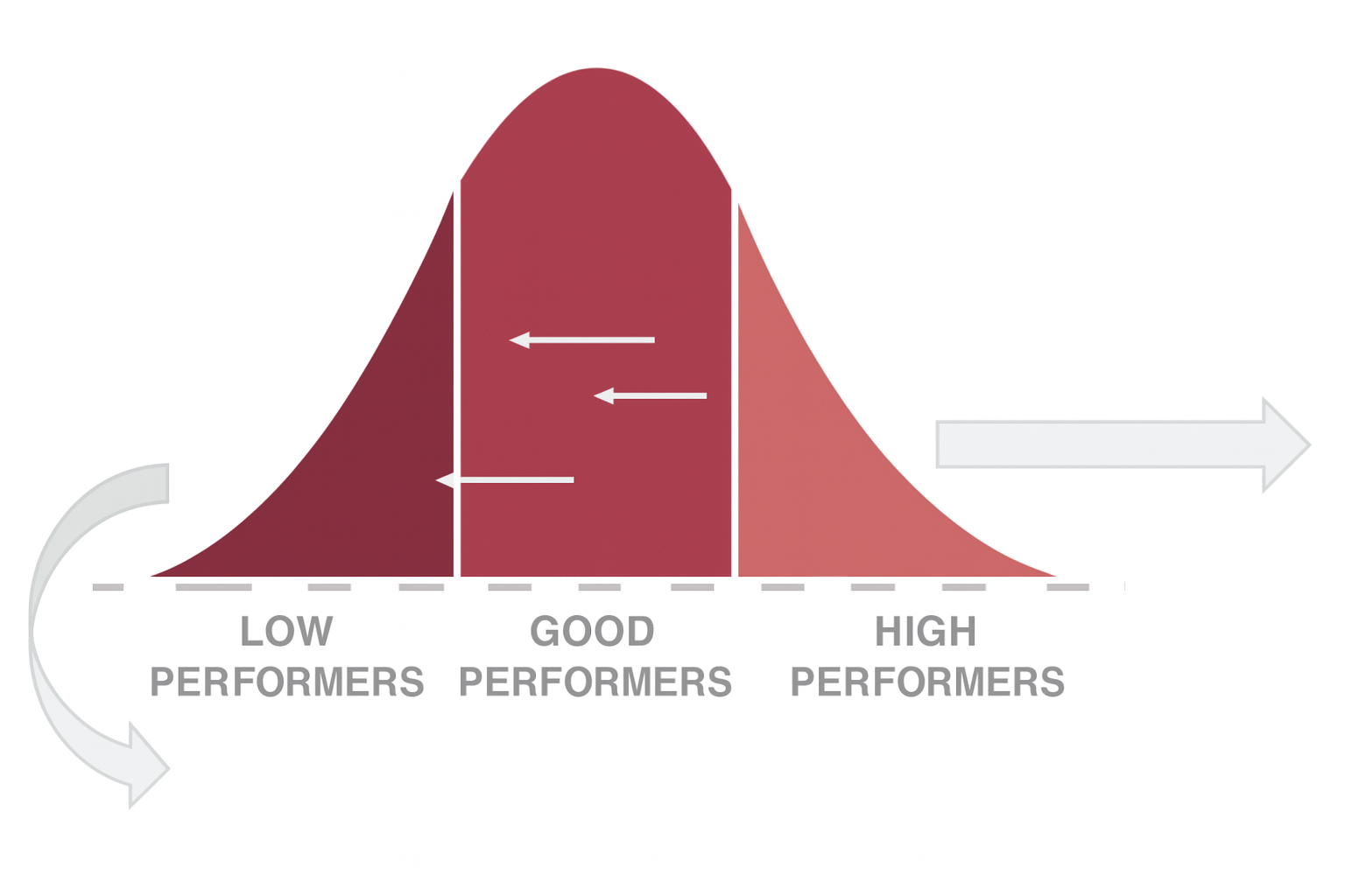Jedes Team – unabhängig von Branche, Grösse oder Reife – folgt einer vertrauten Verteilung: ein kleiner Anteil an High Performern, eine breite Mitte von Gut-Performern und ein kleiner Anteil an Low Performern. Diese Erkenntnis ist nicht neu. Doch der entscheidende Punkt ist: Nicht die Verteilung selbst beeinflusst die Teamleistung, sondern der Umgang der Führungskraft damit.